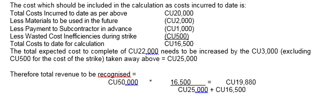 Company A sells goods on credit to customers. It gives customers a 5% settlement discount if the invoices are paid within 7 days. From past experience 30% of customers take up this option. If we assume sales for the month were CU100,000 which occur at month end, the total revenue to be recognised should be: