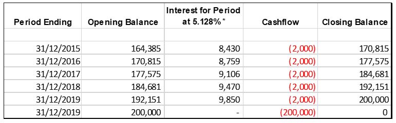 Being journal to recognise effective interest during year 4. At the end of year 4 this 200,000 will be shown as repayable within one year in the balance sheet.